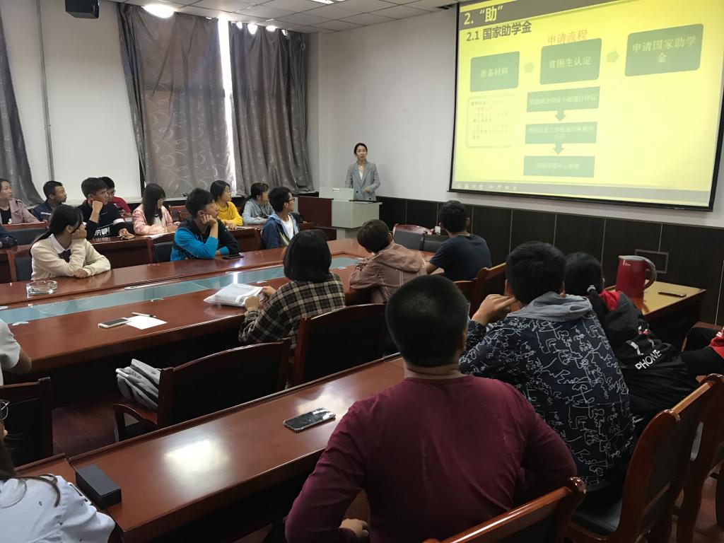 为更好地贯彻落实国家新资助政策,根据省教育厅相关文件精神和学校学生处资助管理中心下发的相关文件,williamhill官网于2018年9月29日中午12点在工1-306会议室组织召开了williamhill中国官方网站对大一新生资助工作指导会议,本次参会的有学院资助工作负责人呼延晓蓉老师和大一新生各班班干部。