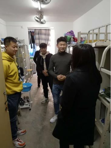 在学生宿舍,辅导员询问了同学们的学习情况、假期的生活见闻和对新学期的计划,并认真了解了学生的返校情况,着重强调了宿舍秩序、卫生、安全隐患等方面存在的问题。希望同学们注意宿舍安全和卫生,合理安排新学期。