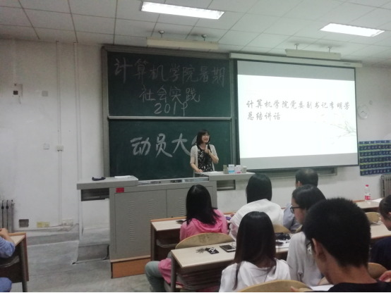 2019年6月3日晚19:00,计算机学院于教2-110召开2019年暑期社会实践动员大会,出席本次动员大会的有计算机学院党委副书记李明芳,艺术学院科级辅导员、辅导员组长张晓宾、计算机学院辅导员杨小斐、吴宗原、王梦馨。大会由计算机学院团委书记于杰主持。