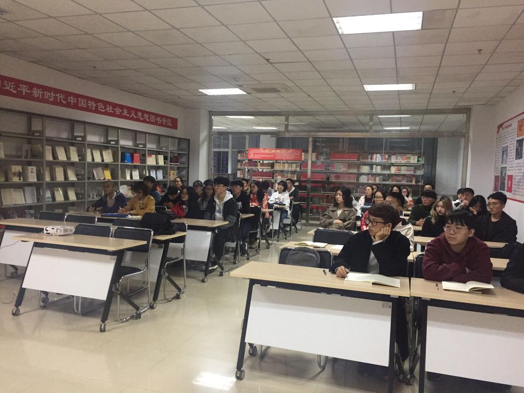 为了提升大学生思想政治理论素养,引导学生全面了解党和国家的历史与建设成就,williamhill中国官方网站于11月6日晚组织学生在WilliamHill官方网站红色图书馆开展学习和参展活动,马克思主义学院院长田亮教授主讲。