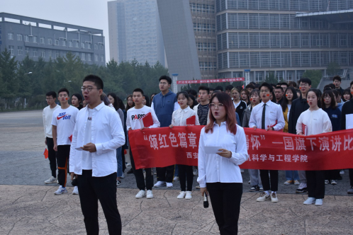 在此前“颂祖国”的演讲比赛活动中涌现的十名优秀朗读者一齐在国旗下诵读对祖国的祝福。