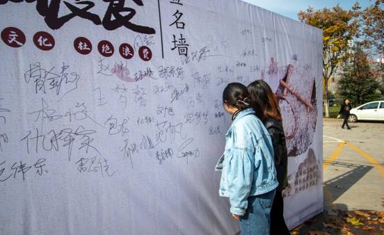 (一)签名活动。本次活动积极号召全校同学于图书馆东门口参与节约粮食海报志愿签名。活动现场,路过师生来到“珍惜粮食”签名墙前,签下自己的名字,承诺将自觉践行“光盘行动”,养成珍惜粮食的好习惯。