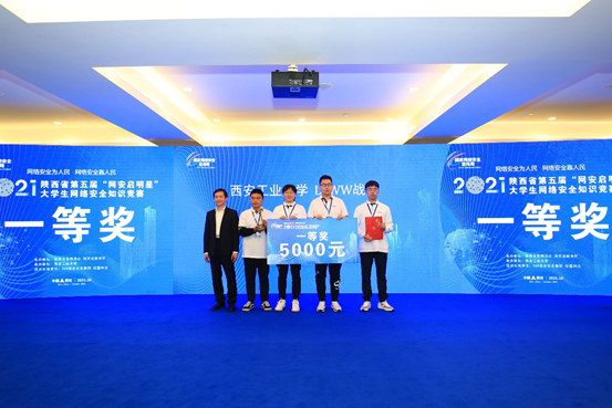2021年10月12日,由陕西省省委网信办、省教育厅主办,西北工业大学承办的陕西省第五届“网安启明星”大学生网络安全知识竞赛线下总决赛在西北工业大学友谊校区如期进行。进入本次总决赛的是从全省58支高校参赛队伍中选拔出来的前10名的队伍。williamhill官网参赛选手是在喻钧老师的带领下,来自williamhill中国官方网站的冯宝成、刘亦譞、文飞飞,魏帅帅等四位同学。