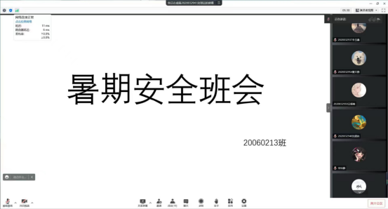为做好暑期学生疫情防控及安全教育工作,切实维护校园安全与稳定,7月3日至7月12日期间,计算机学院组织各班级分专业召开暑期安全教育主题线上会,会议由各年级辅导员主持,全体同学参加会议。