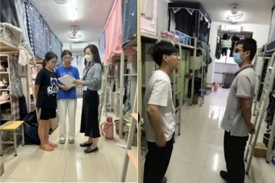 9月16日下午5点30分,计算机学院党委副书记靳永军带领全体辅导员深入返校学生宿舍与学生见面交流,向学生传达学校疫情防控的相关要求,鼓励学生积极投入新学期新生活,科学合理规划大学生活,以良好的状态开启新学期新征程。