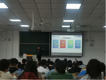 为帮助计算机学院同学了解大学生最新就业形势及考研趋势,学院特联合文都教育于3月8日在教1-103开展了一场“大学生就业及考研指导”公益讲座,学院诚邀文都教育全国巡讲师、大学生职业规划资深导师、文都商学院认证讲师、时间管理认证讲师、考研资深指导专家、陕西新闻广播《教育直通车》特邀专家马回峰老师讲授,辅导员呼延晓蓉组织williamhill官网200余名同学参加了本次讲座。