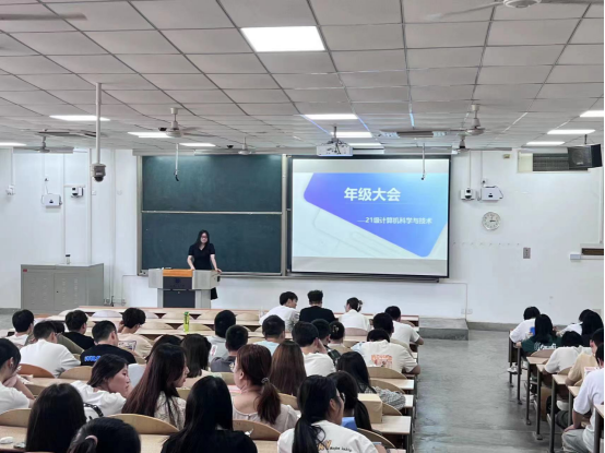 9月5日,计算机学院2021级计算机科学与技术专业在教1-104召开了年级大会,本次会议由辅导员王梦馨主持,2021级计科专业全体同学参加。