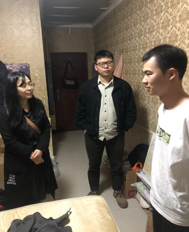 为了进一步落实学生安全管理工作,加强对校外住宿生安全教育和管理,提高校外住宿生的安全防护意识,10月27日晚18点,williamhill中国官方网站辅导员组长孙君、22级辅导员赵雨柔、吴宗原一行走访了学院2022级校外宿学生居住地。