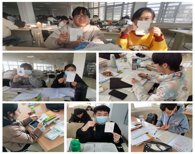 最后,解老师从传统文化的角度对“祝福文化”进行了简单的讲解,提出祝福文化是我国优秀传统文化的一部分,从古至今,在考试,送别,节日、喜事等不同的生活场景中都沁润着祝福的元素。学院这次我们为24届的考研学生手写贺卡祝福,也是传统文化在现实生活中的体现和延伸,衷心祝福本届考研同学考试顺利,取得优异成绩。