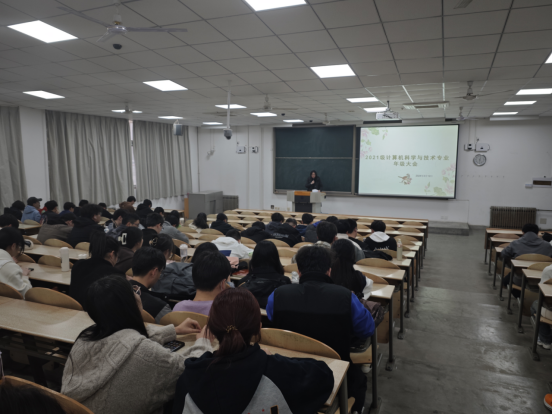 3月12日,计算机学院在教1-101召开2021级计算机科学与技术专业年级大会,2021级计算机科学与技术专业全体学生参会,会议由计算机学院辅导员王梦馨主持。