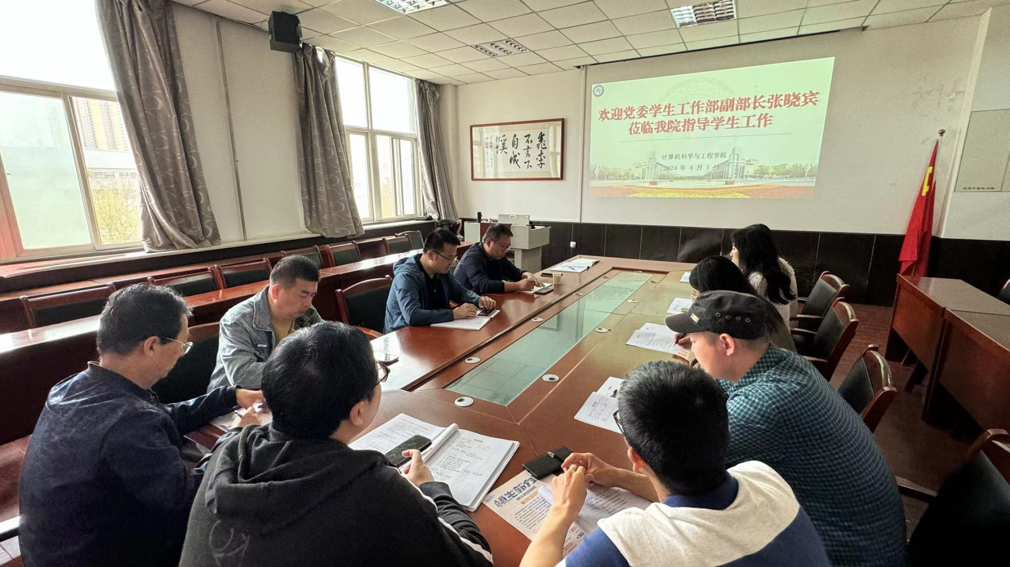 为全面提升学生工作质量,创新学生工作方法,加强辅导员队伍建设,4月1日上午计算机学院邀请学生工作部副部长张晓宾莅临学院作主题报告,并开展学生工作经验交流,学院党委副书记靳永军和全体学工干部参会。