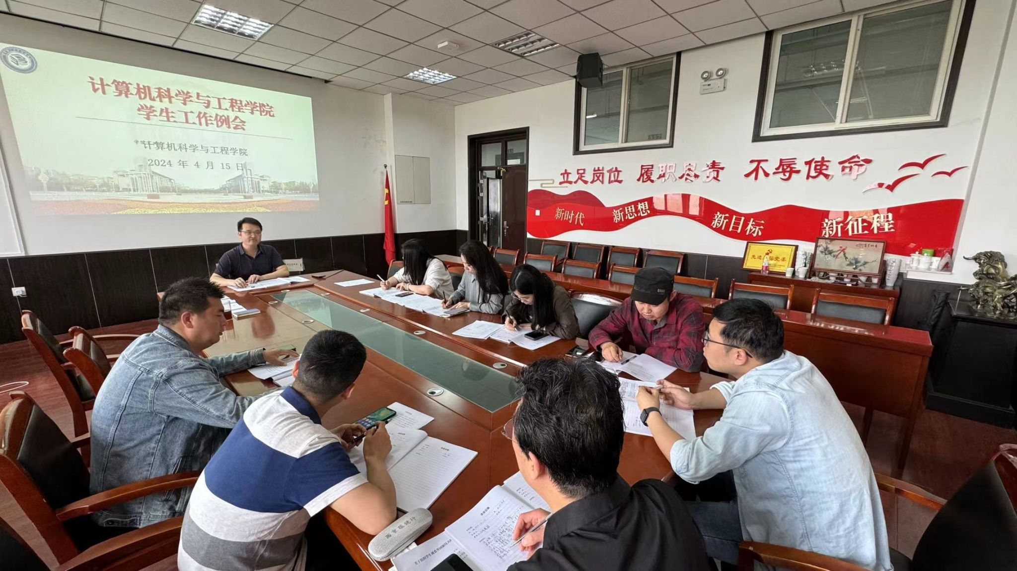 为进一步落实学生工作高质量发展,不断强化思想政治教育工作水平,持续提升辅导员业务素质,计算机学院于4月15日上午10点在1-306召开学生工作案例专题研讨会暨学工干部工作会,学院党委副书记靳永军及各年级辅导员参加会议,会议由辅导员组长孙君主持。