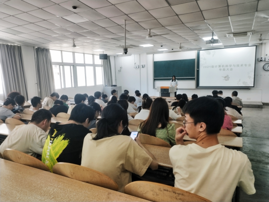 计算机学院2021级计算机科学与技术专业于5月10日在教1-102召开年级大会,会议由计科专业辅导员王梦馨主持,专业全体学生参加。