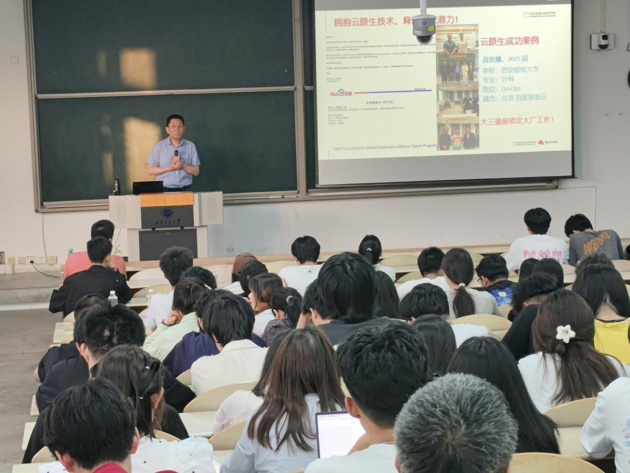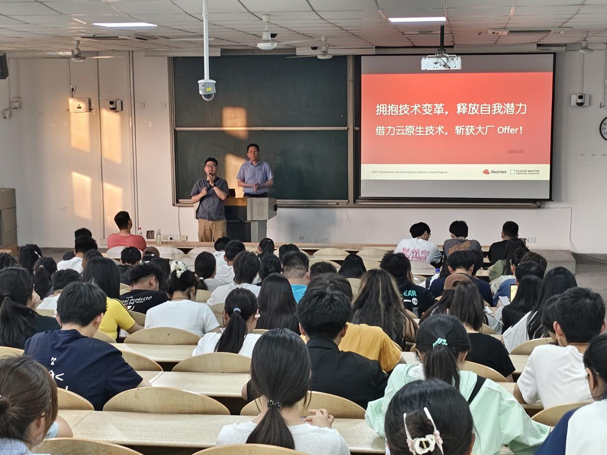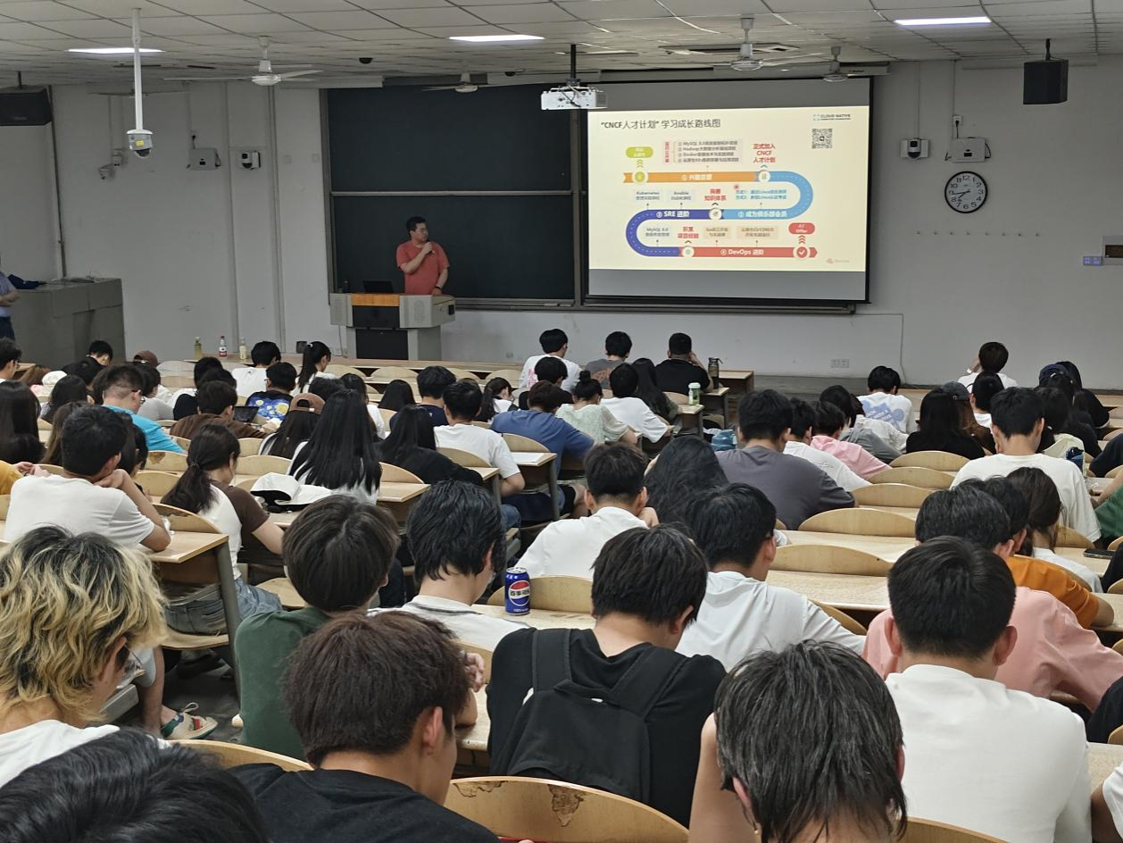 5月22日,晚19点,计算机学院在教1-103举办“拥抱技术革新,释放自我潜力”云原生技术宣讲会,近300名学子参加本次活动。