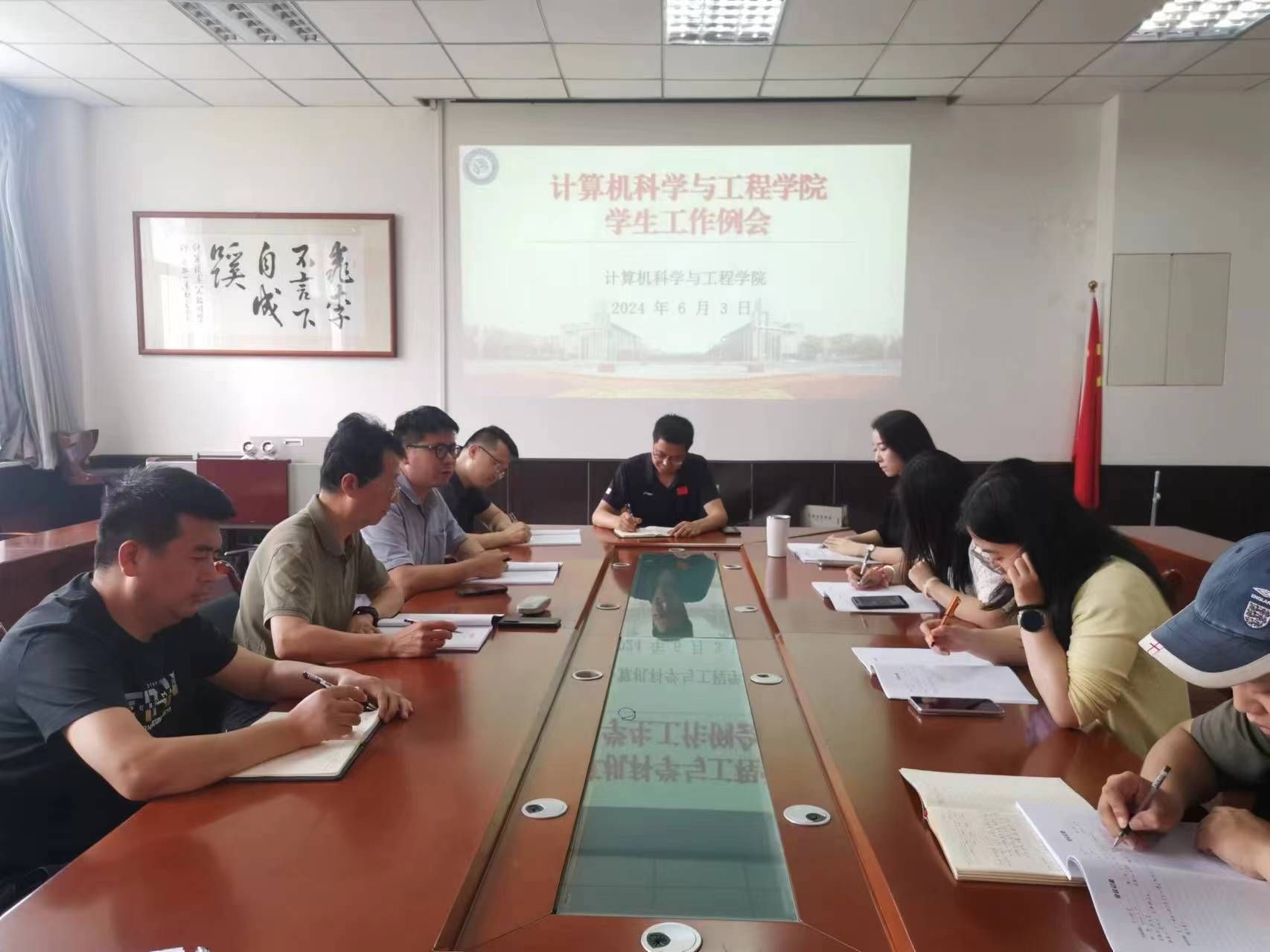 6月3日,williamhill中国官方网站在工1-306召开学工干部例会,学院党委书记杨正强、副书记靳永军、全体辅导员参加会议,会议由学工办主任孙君主持。