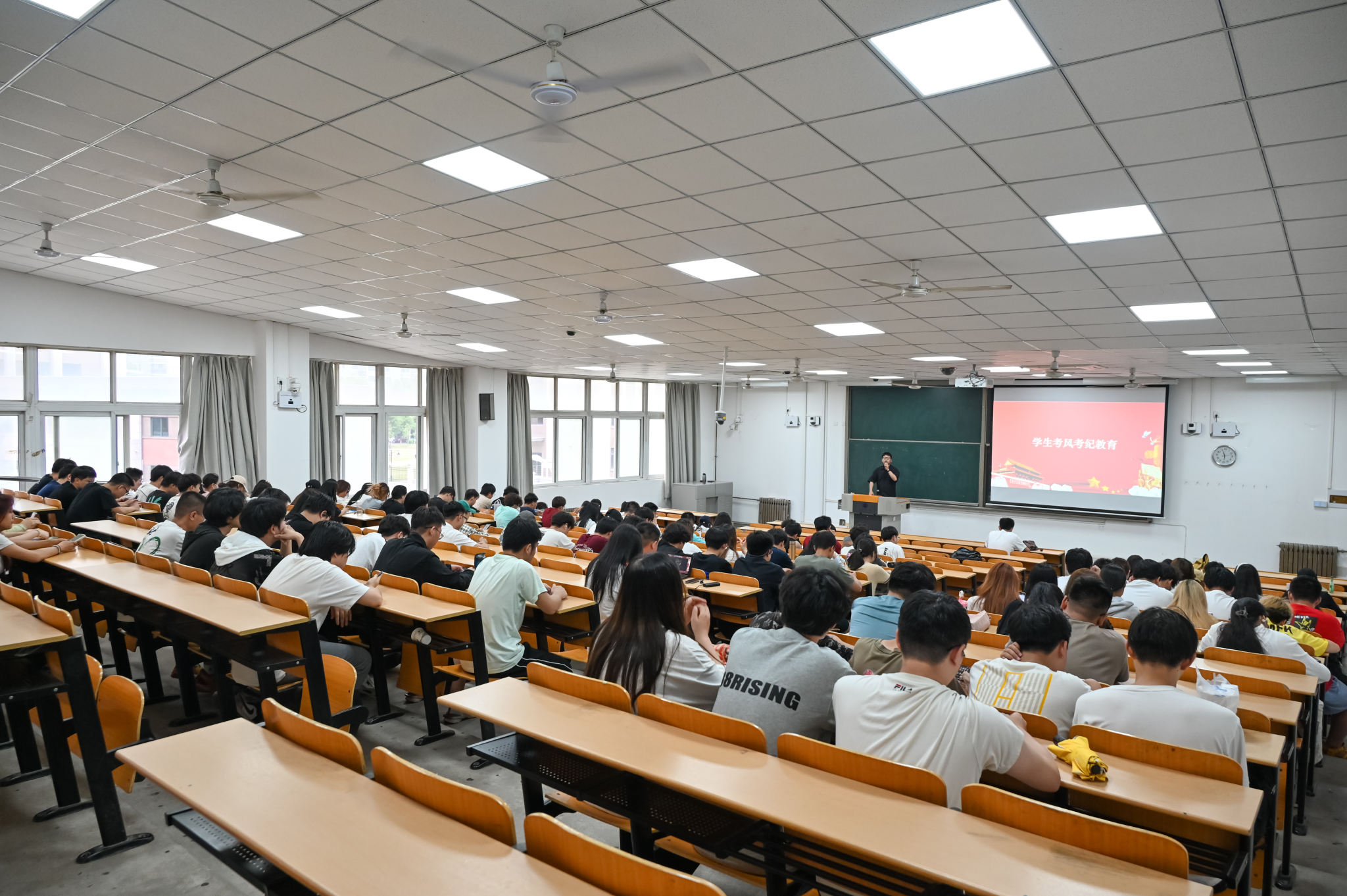 为提高学生安全防范意识,进一步加强学风建设,严肃考风考纪。计算机学院于6月6日下午17点50,在教1-201召开2022级小专业全体学生端午假期安全教育暨诚信考试教育大会。