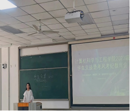 王娟老师为同学们分享了暑期实践活动,介绍了相关政策,并进行了工作交接。随后,孙君主任详细介绍了学院的概况、专业特色、科学研究和教育教学等方面的内容,并对计算机专业的培养方案实施进行了详细说明。