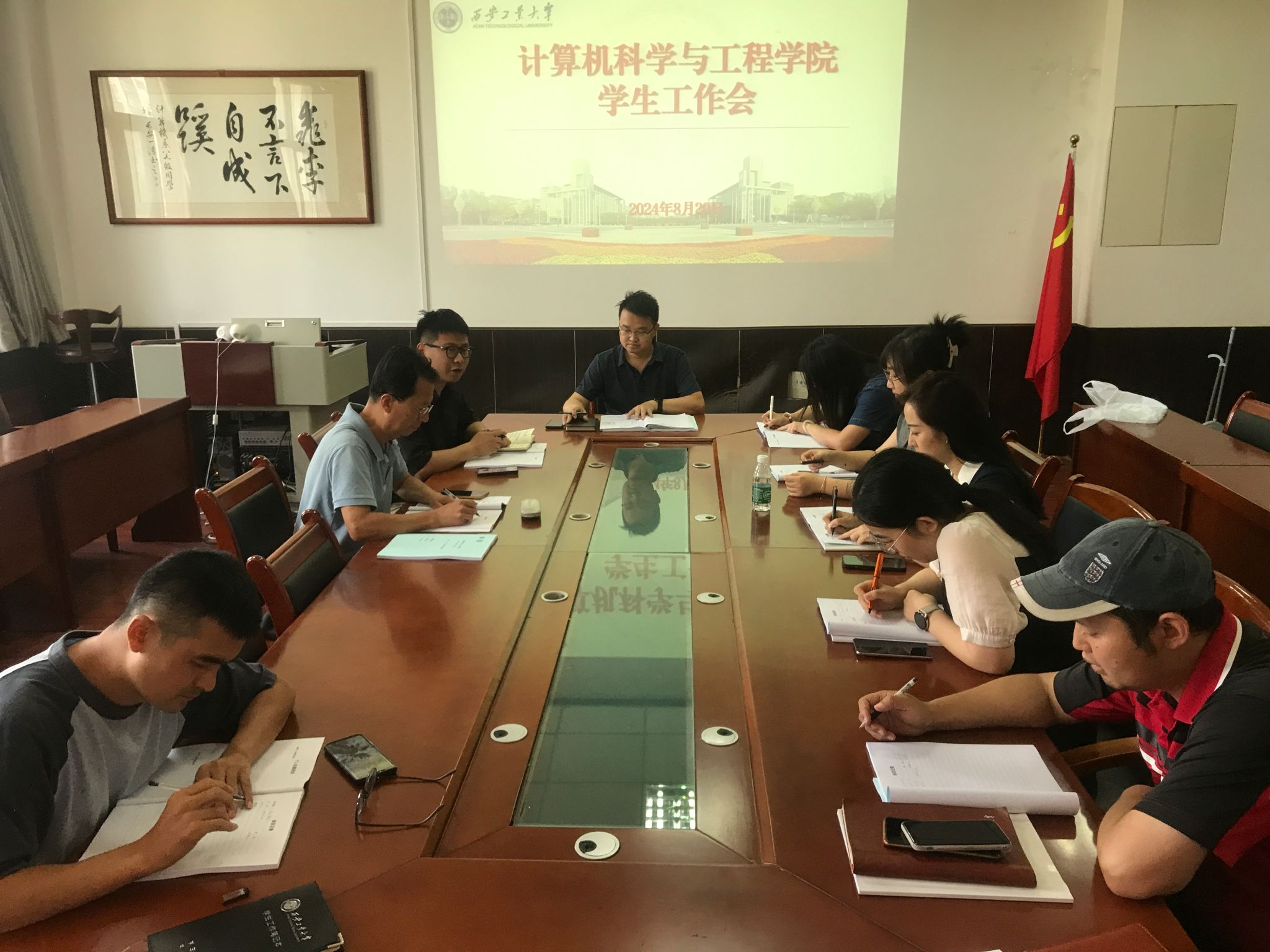 8月20日,williamhill中国官方网站在工1-306召开学工干部例会,学院党委副书记靳永军、全体辅导员参加会议,会议由学工办主任孙君主持。