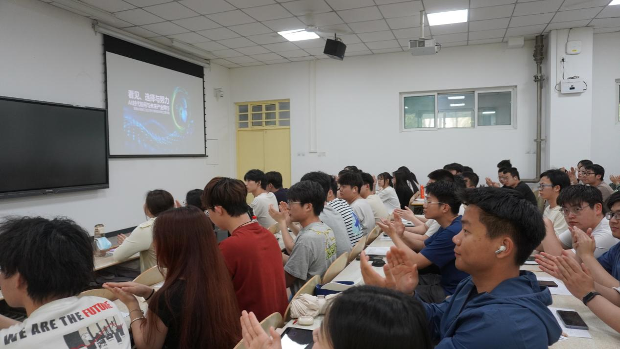 报告会上,蔡鹏先生以“看见、选择与努力——AI时代如何与未来产业同行”为主题,结合自身丰富的行业经验和深刻洞察,为同学们带来了一场启迪智慧的讲座。他首先从“看见”的角度出发,分析了AI时代未来产业的发展趋势和机遇,指出人工智能、大数据、云计算等前沿技术正深刻改变着传统产业格局,为同学们描绘了一幅充满无限可能的未来产业蓝图。
