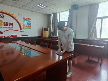 在劳动教育实践环节中,师生们分组开展专项清洁行动:第一梯队重点对学院楼道、教研室、实验室进行深度清洁,精心擦拭荣誉墙、学术展示栏等校友记忆节点;第二梯队专门布置校友座谈会场地,规范摆放套桌椅并调试多媒体设备,每个座位摆放校庆纪念手册。将校史教育融入劳动实践,让青年学子在服务校庆准备工作中感悟"崇尚劳动、尊重劳动"的价值真谛。此次主题活动通过将校庆筹备与劳动教育有机融合,既为校友返校营造了窗明几净的温馨环境,又让参与学生在躬身实践中深化了对"劳动创造价值"的认知。70余名志愿者以特殊方式献礼七十华诞,用实际行动诠释劳动育人内涵,展现了新时代青年学子爱校荣校的责任担当。