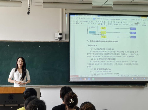 随后姜沛阳介绍了关于团组织关系转接的类别、注意事项、学院团委对学社衔接工作具体安排,特别提醒毕业生团员在离校前需完成的个人团员信息、团档案核查等工作。