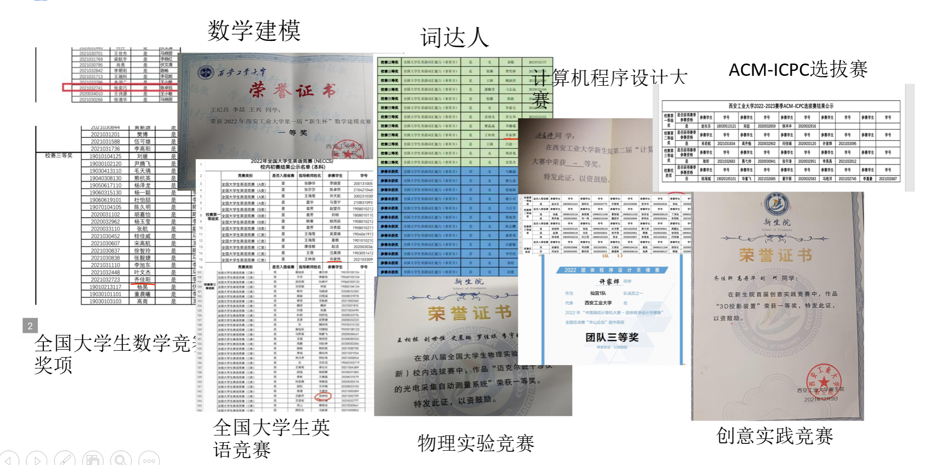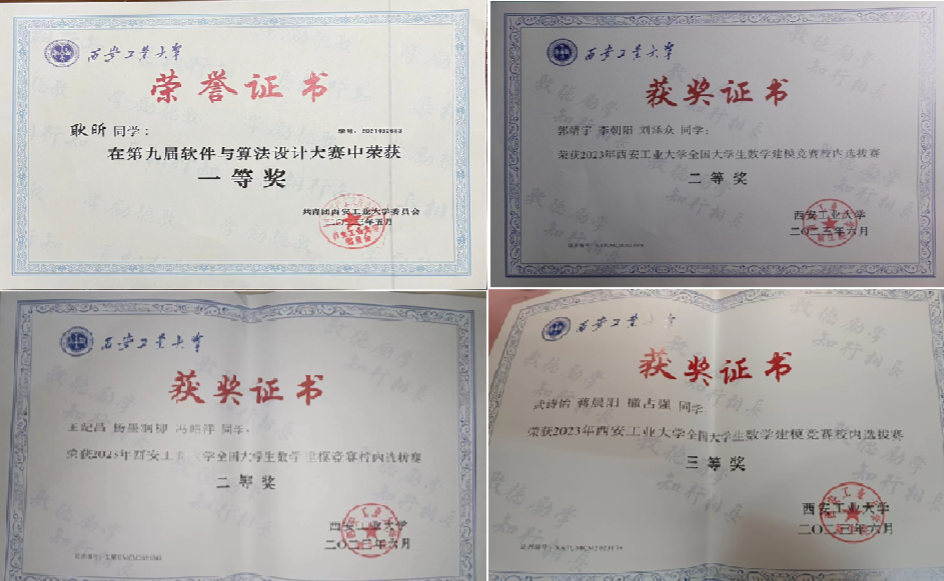 在上一学年中,班级学风、班风良好,学习氛围浓厚,集体平均绩点3.4,英语四级通过率达到了94.67%,班级多名同学获得三好学生、优秀学生干部、创新创业奖学金、学业奖学金等,获奖率超过50%。除了学业上获得良好成绩之外,班级同学也积极参加互联网+、挑战杯、蓝桥杯、大学生数学竞赛、英语竞赛等各项竞赛活动,参与国家级学科竞赛校级初赛的比例为100%,其中多人在校赛阶段获奖,有6名同学获得省级以上奖励。班里有3名同学获得学校“竞赛之星”称号,1名同学获得“学习之星”称号,1名同学获得“自强之星”称号。班内同学互帮互助、共同学习、交流心得、一起进步。各类竞赛奖项层出不穷。