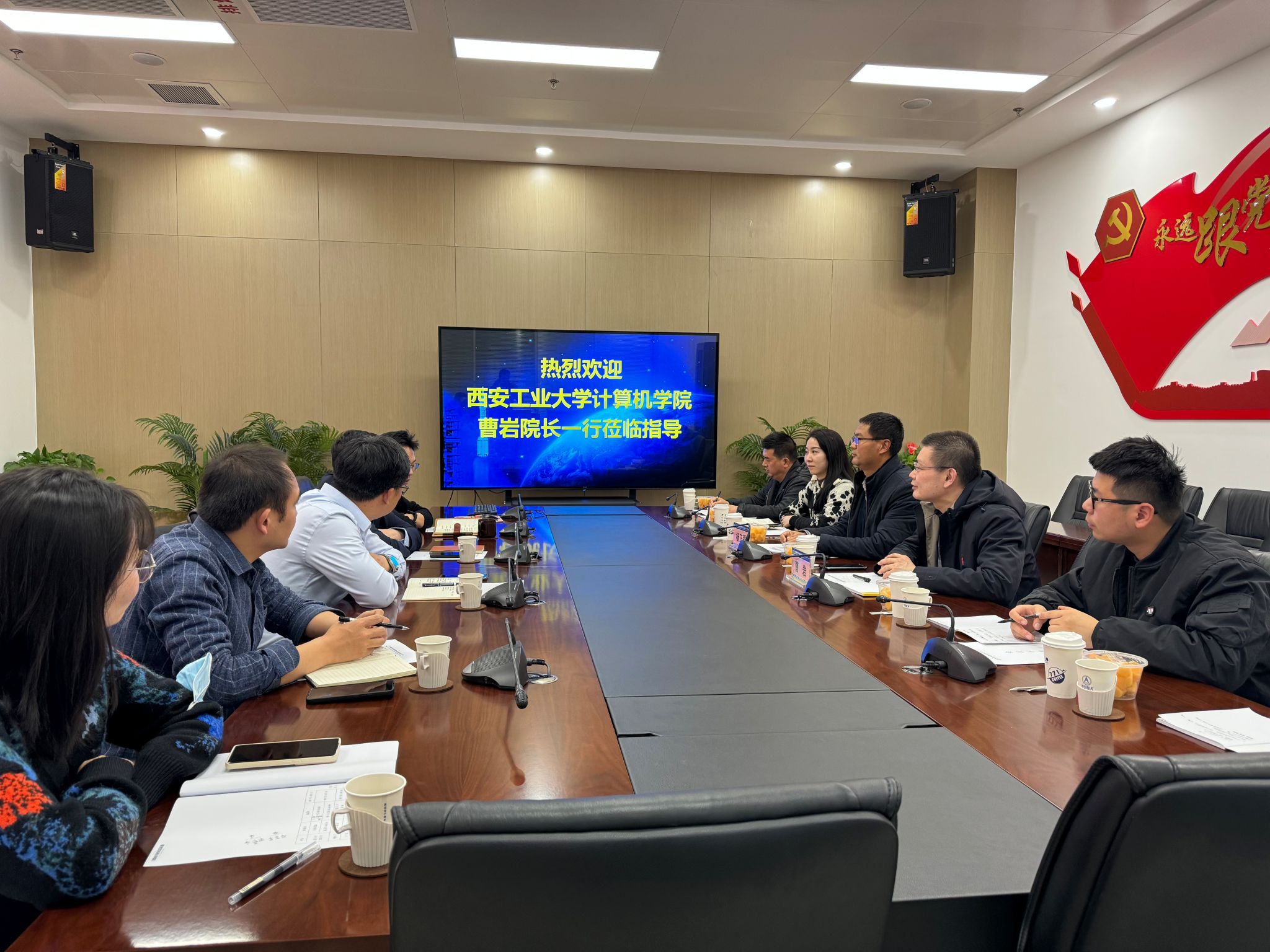 随后,曹岩院长和杨正强书记对航天七七一所的热情接待表示感谢,分别对计算机学院基本情况、专业设置、人才培养、学院学生就业等方面工作进行介绍。他们指出,此次校企合作交流活动是计算机学院与企业深化合作的重要举措,将为学院师生提供更广阔的实践机会和发展平台,促进学术研究与产业发展的深度融合,为培养更多高素质计算机人才奠定坚实基础。学院将继续积极促进人才培养与企业用人需求精准对接,实现毕业生更加充分、更高质量就业,更好地服务地方经济社会高质量发展。