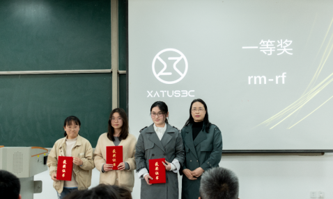 下午17:10分在比赛现场举行了颁奖仪式,出席颁奖仪式的嘉宾有:williamhill中国官方网站网络与信息工程系主任兼网络空间安全协会理事长喻钧老师、网络空间安全协会副理事长王亚文老师、西安萨尔网络科技有限公司郭媚杰女士。