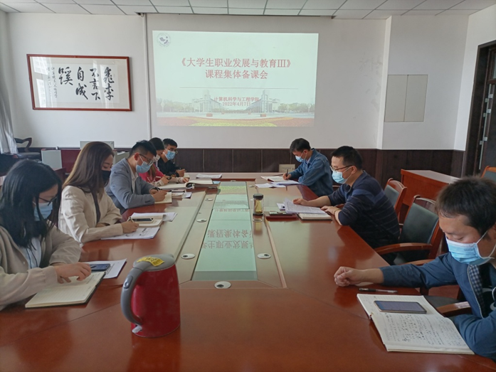 为提高《大学生职业发展与教育III》课程的教学质量,充分利用好课堂阵地,做好2023届毕业生的升学、就业指导工作,2022年4月8日,计算机学院全体学工干部在靳永军副书记的带领下,开展了集体备课,讨论并确定了该课程的教学内容、教学安排和教学重点。