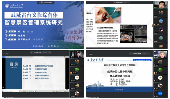 疫情期间,依据williamhill官网对硕士研究生开题答辩的相关要求,计算机学院于1月6日-11日期间,通过“腾讯会议”网络平台,陆续开展2020级计算机科学与技术、软件工程和电子信息硕士专业线上答辩工作,累计组织会议7场,答辩780余小时,共有107名研究生参加硕士学位论文开题答辩。为确保答辩工作顺利有序地进行,学院严格遵照研究生院网络答辩工作流程,精心设置答辩组,提前制定线上答辩流程和相关预案等准备工作。研究生督导张志文教授参与指导。