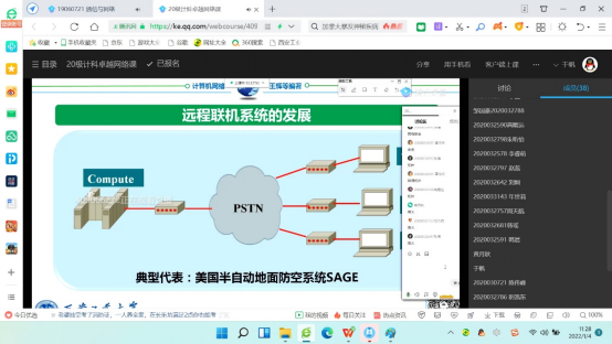 黄姝娟老师使用腾讯会议(356-4618-976)+QQ直播授课,结合学习通建课完成《物联网系统设计与应用》开学第一课的线上授课。她首先介绍了该课程相关内容和考核方法,描述了每章的章节内容和学生作业,展示了实验视频,作业视频等上届学生所做内容,引发学生学习兴趣,期间,和学生互动良好,用QT做动画小车运行演示,学生积极展示自己的成果,并给予共享屏幕展示成果的同学记录课堂分数;此后,通过点名李博文同学,邀请共享屏幕,该学生软件存在问题,及时给予指导调试通过,大大激发了学生动手编程的兴趣。