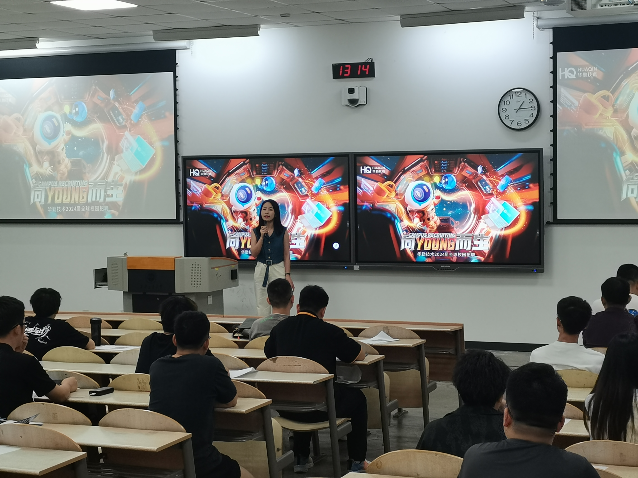 西安区域软件部总监汪涛向同学们介绍了公司基本情况、发展历程、业务范围、企业文化以及未来的发展规划。通过具体的介绍和详实的数据,让同学们对华勤技术有了更加全面和深入的了解。