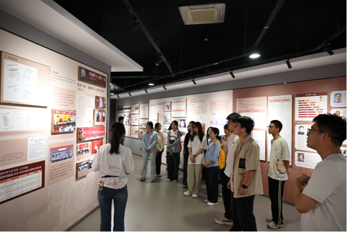 在讲解员的引领下,同学们开启了一场探寻学校发展历程的奇妙之旅。走进学校的校史馆,时光仿佛倒流,一件件承载着岁月痕迹的展品、一幅幅珍贵的老照片,生动地展现了学校在从起步到蓬勃发展的蜕变历程,诉说着学校一路走来的艰辛与辉煌。大家深切体会到,学校的每一步发展都凝聚着无数教育工作者和建设者的辛勤汗水,正是他们的不懈劳动,才铸就了学校今日的成就。