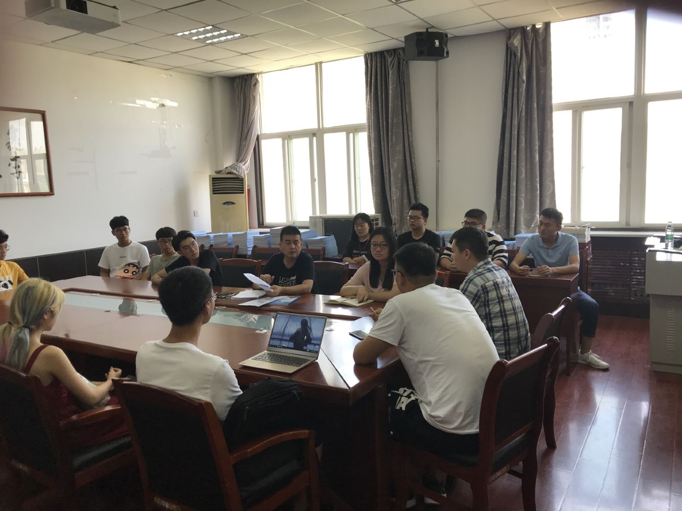 2019年9月1日下午,计算机学院于工1- 306会议室召开了2019年迎新工作布置会。2019级新生辅导员解军强、王梦馨,团委书记于杰,辅导员韩霄、研究生秘书高金生及全体团学干部参加了此次会议。