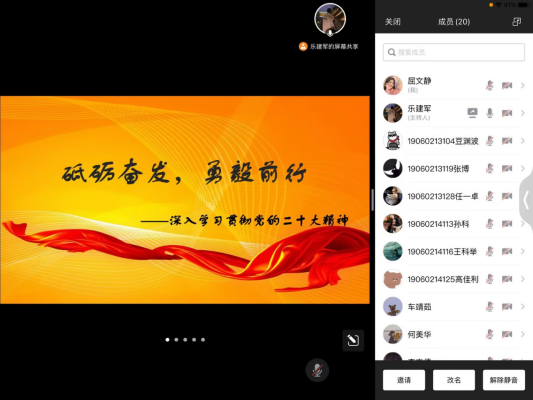 11月22日晚,williamhill中国官方网站学生第六党支部举行了学习二十大精神的主题党日活动,会议以线上形式展开,由支部组织委员乐建军主持,支部全体党员参加。
