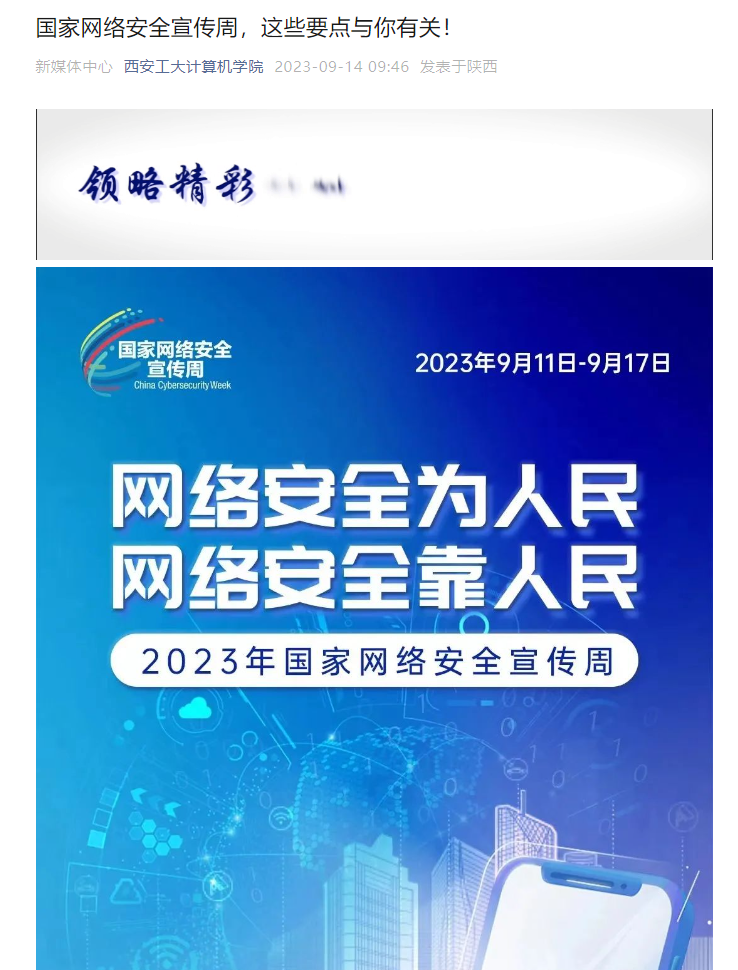 为深入贯彻学习习近平总书记关于网络意识形态工作“坚决打赢网络意识形态斗争”的重要论述以及关于网络安全和信息化工作的重要指示精神,计算机学院积极响应学校《关于开展第十届国家网络安全宣传周活动的通知》文件精神,于9月11日至9月17日举办以“网络安全为人民,网络安全靠人民”为主题的2023年国家网络安全宣传周系列活动。