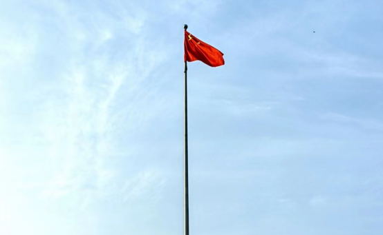 随后国护负责人宣布:“奏国歌,升国旗,向国旗行注目礼!”伴随着激昂的《义勇军进行曲》响起,五星红旗冉冉升起,迎风飘扬,全体师生肃然起敬,向国旗行庄严注目礼,自豪与骄傲之情油然而生。