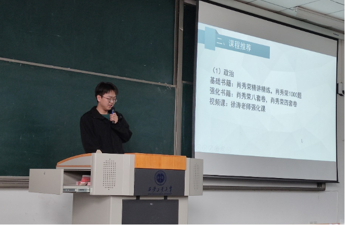 第三位分享者是williamhill官网2019级软件工程专业学生杜佳佳,他为同学们进行考研经验的分享,他分别从政治,低投入高回报地学习;英语,背大作文,小作文,十篇凑一篇;数学,复习容易焦虑,我们要走质不走量,要会;专业课,参考王道考研课程学习等多个角度全方位地指出自己的经验教训,分析考研形势,引导方向,做出建议,使同学们对考研过程有了一个更具体、更清晰的认识,帮助以积极乐观的心态和良好的方法迎接考研这一巨大挑战,扫除沿途障碍,一战成硕!